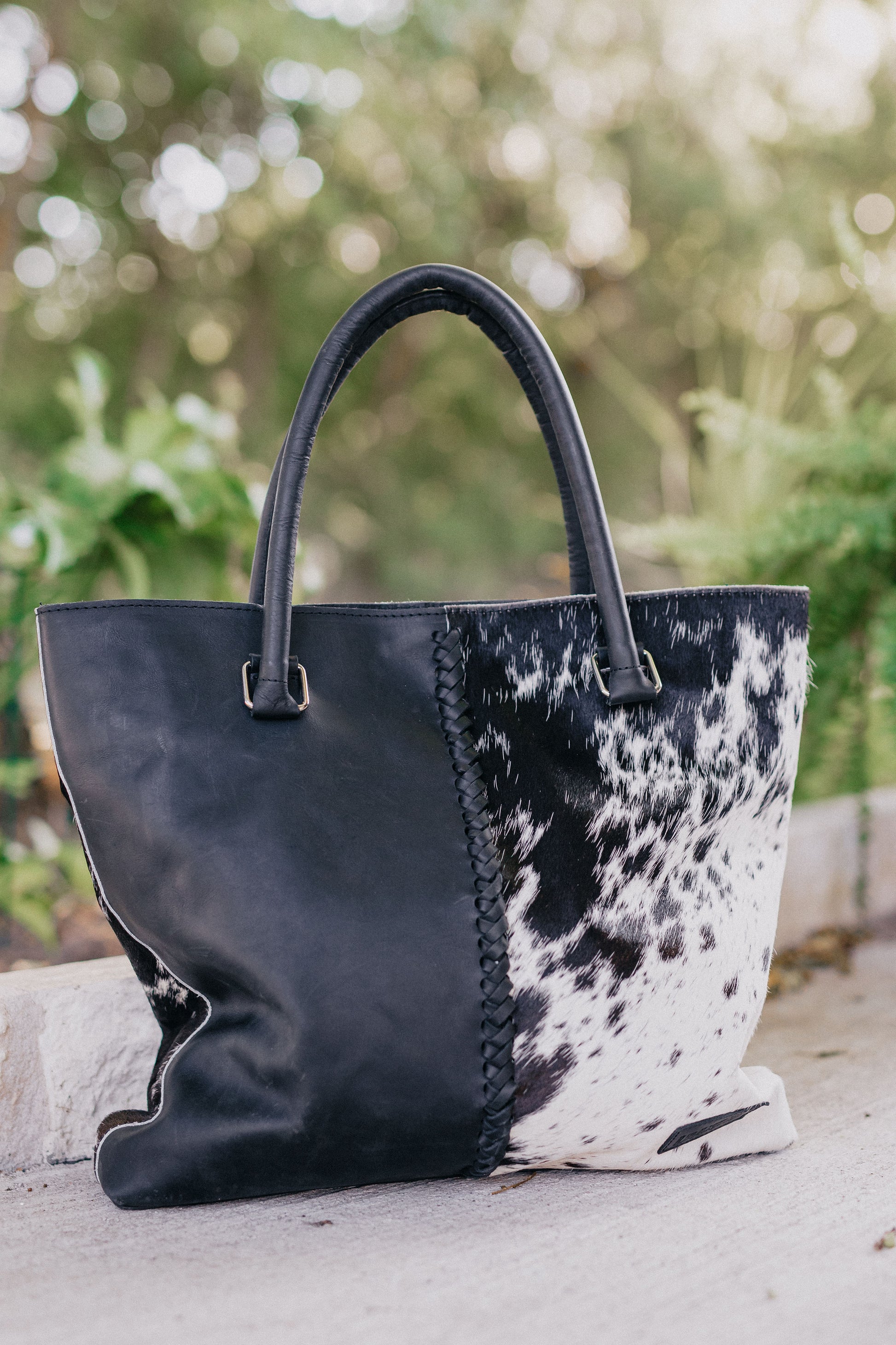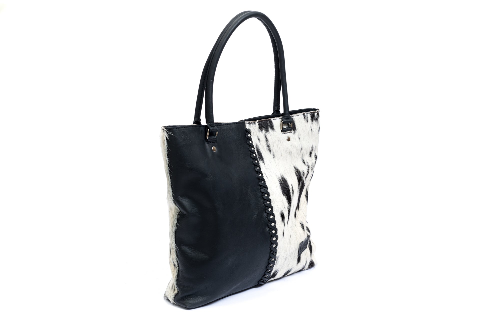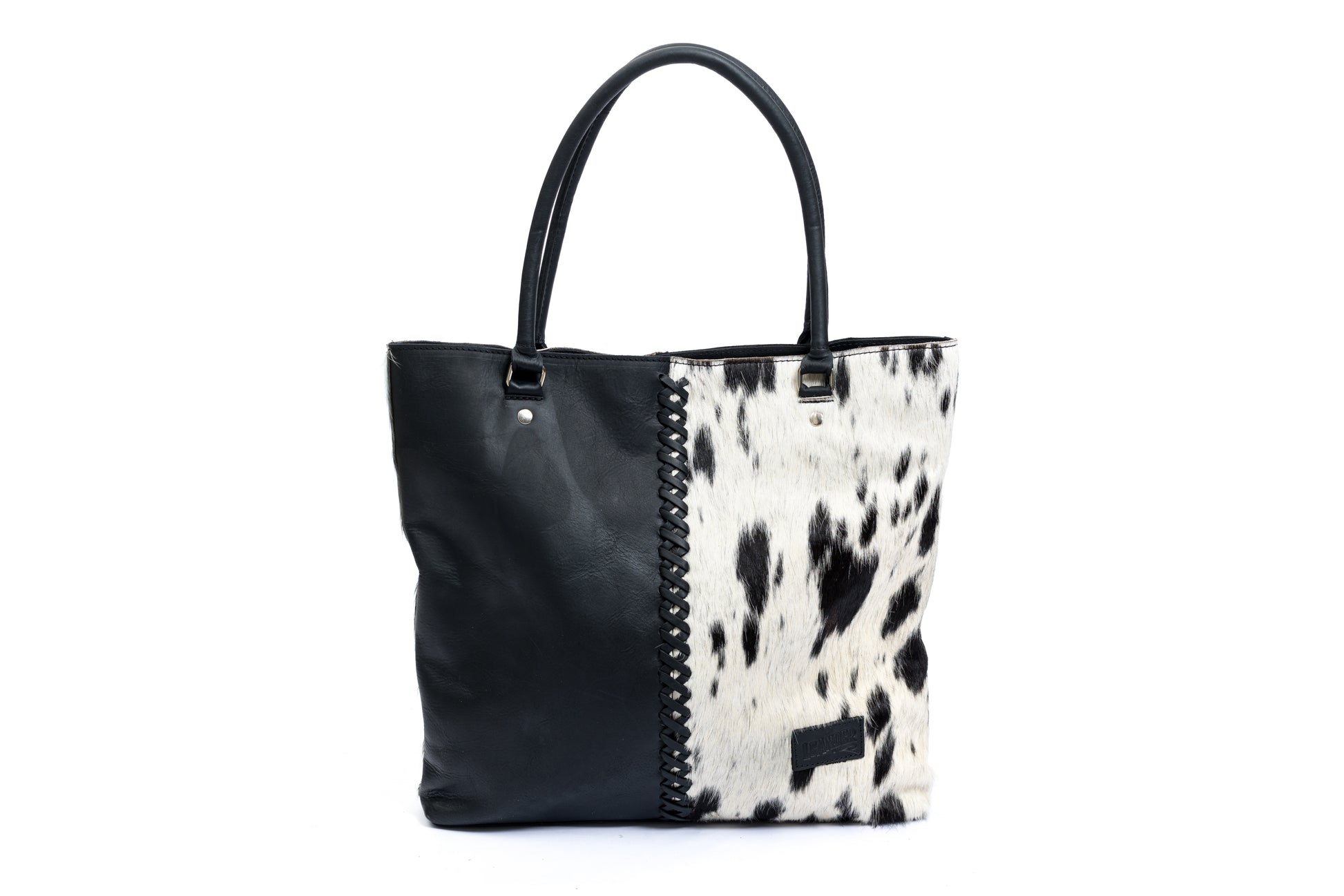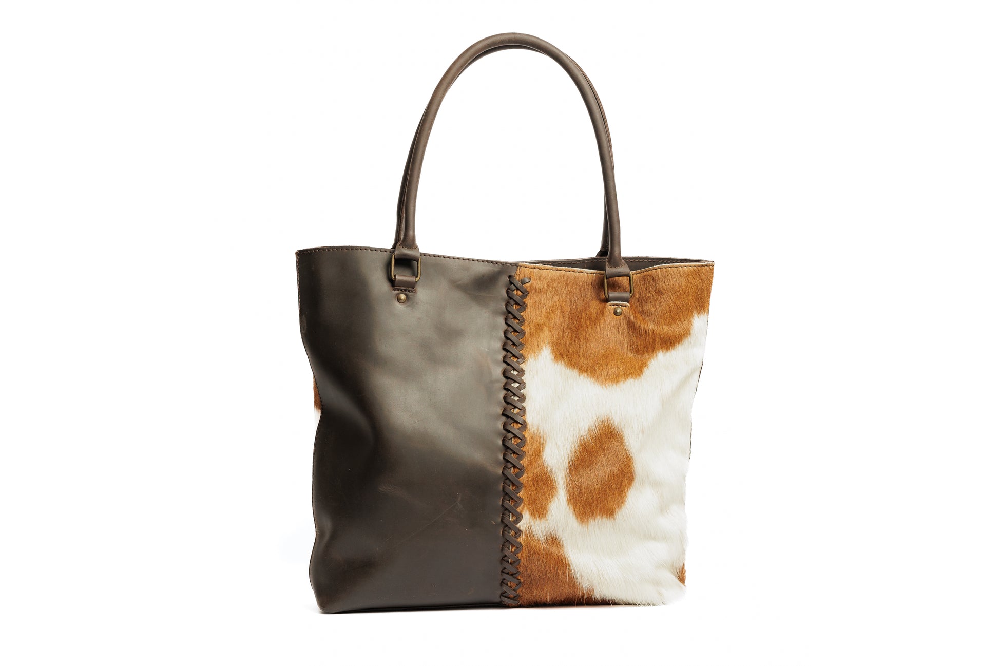 Introducing Rickie, the hot cowhide tote that's sure to turn heads! Handcrafted from a luxe mix of hair-on cowhide and smooth leather, it features hand-stitched detail, dreamy rolled leather handles, an interior zip pocket and accessory pouches, and a magnetic snap closure. So go ahead, take Rickie out for a spin - you'll be totes impressed! (17" x 15"; 10" handles)